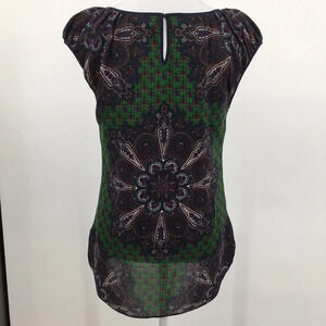 Charlotte Brody Blouse Womens XS Green Blue Wool Boho Top Casual. Scoop neck. Sleeveless. 100% Wool. Silk lining. Pre-owned Condition- no flaws, no rips, stains, or holes.