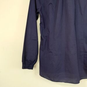 Charlotte Brody Cotton Tie Neck Long Sleeves Blouse Size L In Navy Blue