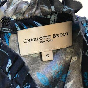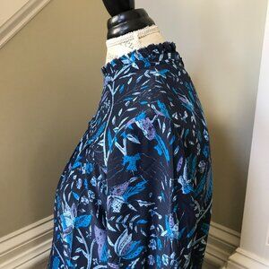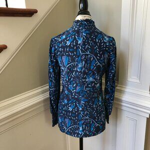 Charlotte Brody Gathered Top Shirt Blouse Womens Small Blue Purple Long Sleeve