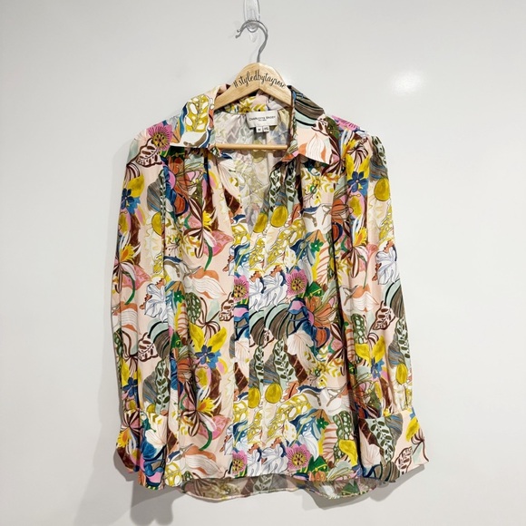 Charlotte Brody New York Floral Print Button Down Silk Blouse Top