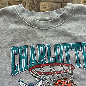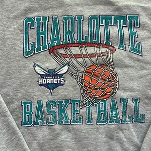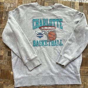 Charlotte Hornets NBA Basketball Sweatshirt. Crewneck. Gray. Ribbing at neck, cuffs, waist. Cotton/polyester. Size 2XL