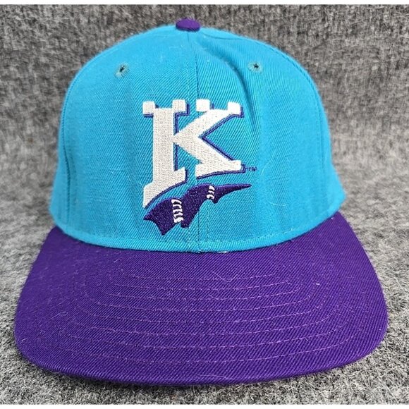 Vtg 90s Charlotte Knights Minor League DeLong Fitted Hat 7 Teal/Purple