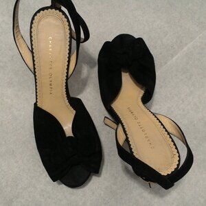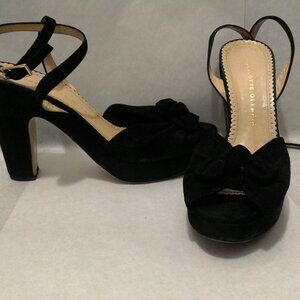 Charlotte Olympia Black Peep Toe Sandal Heels with Bows | Suede EU39 | US 8
