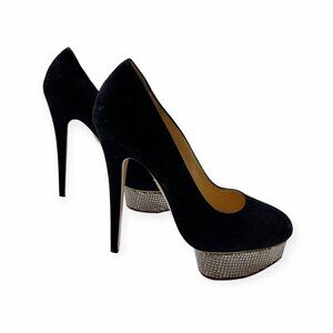 Charlotte Olympia Dolly Suede Platform Pumps with Metal Platform
