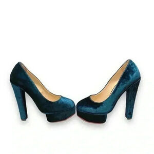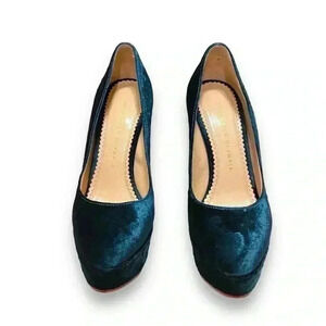 Charlotte Olympia Emerald Green Textured Velvet Pump High Heels Size 7.5