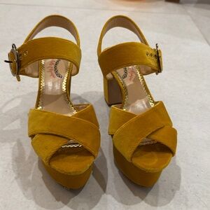 Charlotte Olympia Mustard Yellow Velvet Platform Heels