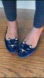 Chic navy velvet loafers with a playful cat face design. Ideal for a fun. stylish look.