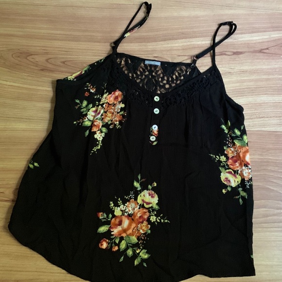 Thin material, light weight, black, flowered Charlotte Russe tanktop. Hardly worn!