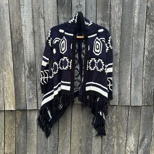 Charlotte Russe Asymmetrical Shrug with fringe.