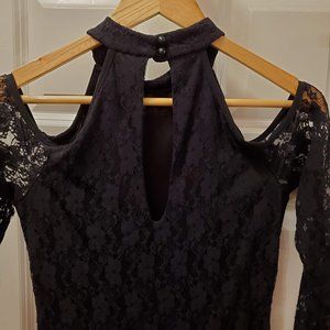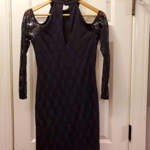 Charlotte Russe, Black Dress, Cold Shoulder, Long Lace Sleeves with button choker neck