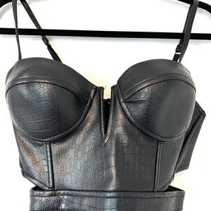 Charlotte Russe Black Faux Leather Corset Bustier Top Size Small
