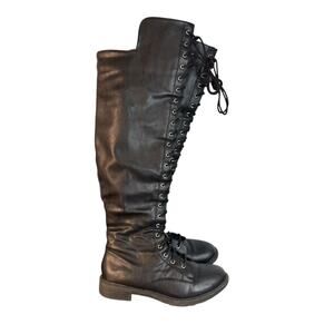 Charlotte Russe Black Faux Leather Over the Knee Lace Up Combat Boots size 6