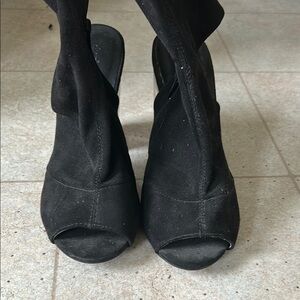 Charlotte Russe Black Heeled Ankle Boots with Peep-Toe
