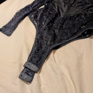 Black lace bodysuit with long sleeves. Perfect for a night out.