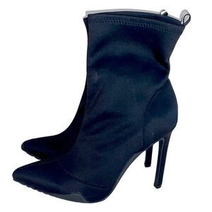 Charlotte Russe Black Pointed Toe Sock Boots Reflective Stripe Rubber Soles Sz 9