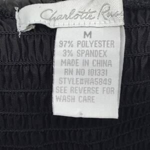 Charlotte Russe Black Corset Top Medium. This pre-owned, good condition corset top features a flattering design with a black accent belt and ruching all around for a textured look. Made from a comfortable polyester and spandex blend, it offers a pit-to-pit measurement of 14 inches, making it a stylish addition for a size medium. Color: Black Size: Medium Style: Corset Top, Ruching, Accent Belt Condition: Pre-Owned - Good Materials: Polyester and Spandex Blend Measurements: Pit to Pit 14" #CharlotteRusse #CorsetTop #BlackCorset #SizeMedium #PreOwnedFashion