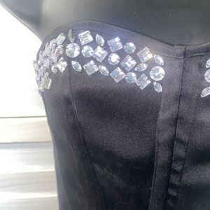 Charlotte Russe Black Satin Rhinestone Strapless Bustier Corset Sz S