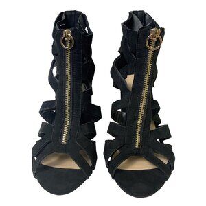 Charlotte Russe Black Strappy Open-Toe High Heel Sandals Bootie Zipper Size 8