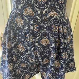 Charlotte Russe Blue Boho Floral Romper with Scoop Neck & Tie-Back – Size S