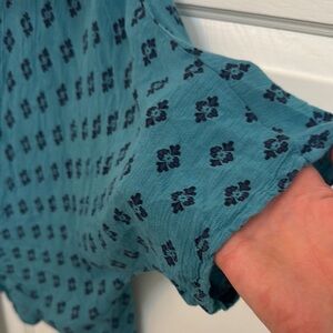 This chic blue blouse from Charlotte Russe features a trendy tie front and cropped length. Size M. Bohemian style.