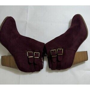 Charlotte Russe Boots Womens 8 Ankle Booties Heels Side Zip Maroon Faux Suede