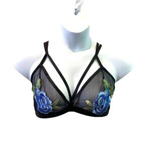 Charlotte Russe Bralette Black Blue Rose Wireless Pullover Strappy Back 1X