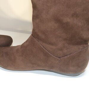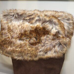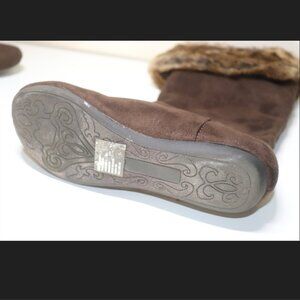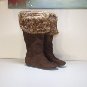 Charlotte Russe Brigitte Faux Suede With Fur Brown Mid Calf Knee Boots Size 6