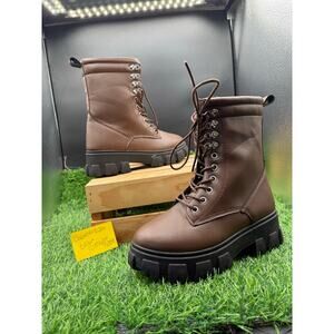Charlotte Russe - Brown Leather- Combat Boots - Size 8W