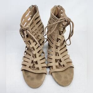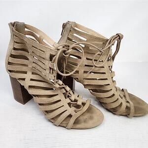 Charlotte Russe Brown Tan Ankle Boots Sandals Back Zip Blick Heel Women's Size 7