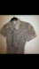 Cute short-sleeve, button-down blouse from Charlotte Russe; flattering vertical pinstripe pattern in shades of brown and white.