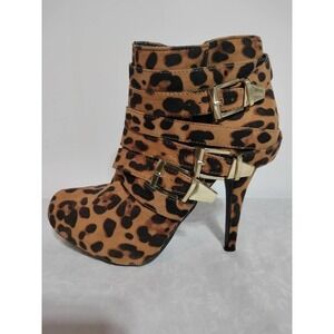 Charlotte Russe Cheetah Print Heeled Ankle Height Booties woman size 7 /37