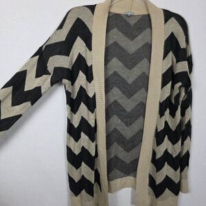 Charlotte Russe Chevron Cardigan S Black Beige Open Front