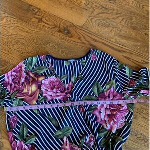 Bohemian lightweight cropped blouse deep v neckline large bright floral print bell sleeves elastic waistband great preloved condition smoke/pet free home