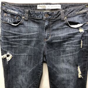 Charlotte Russe Denim Jeans Size 14 Sexy Rolled Crop Blue Wash Factory Destroyed