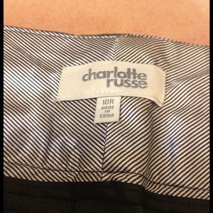 Dress pants by Charlotte Russe in charcoal gray. Flare leg shape. Very comfortable fit/material unlike other dress pants. Size 10R. No longer fits me.
