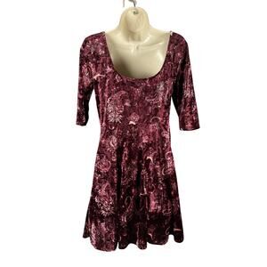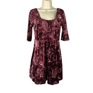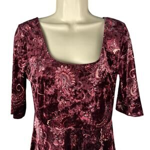 Charlotte Russe Dress Womens Large Burgundy Paisley Velour Vintage USA Y2K