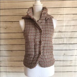 Fun and unique embroidered style vest, inside is lined in soft silk-like pink material and cones with removable hood and features pockets and zipper front with buttons. Overall in great used condition, pink lining has one spot wear it has come slightly undone, see last photo.