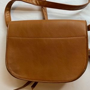 A small rarely used shoulder bag. Some of the stitching of the flowers are sticking out, and there is a green mark on the inside of the bag. It can hold a phone and a couple other things comfortably.