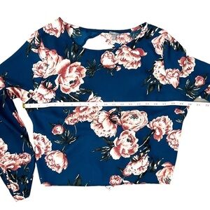 Charlotte Russe Floral Blue Sheer Long Sleeve Tie Back Top - Size Large