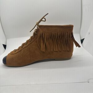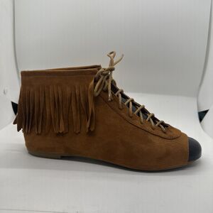 Charlotte Russe Fringe Suede Lace Up Bootie Brown Boots Womens Size 9