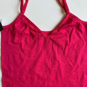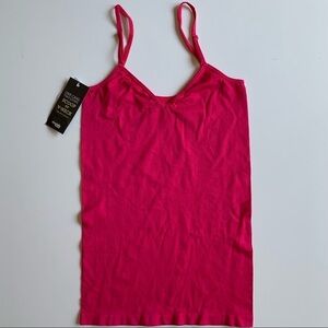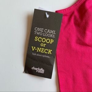 NWT. Charlotte Russe Fuchsia Basic Tank Top, features reversible v-neck or scoop neck and adjustable straps.