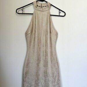 Night out, Sabrina Carpenter, Concert, Gold, Metallic, Mini, Bodycon, Strappy, Sleeveless, Halter, Taylor Swift