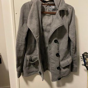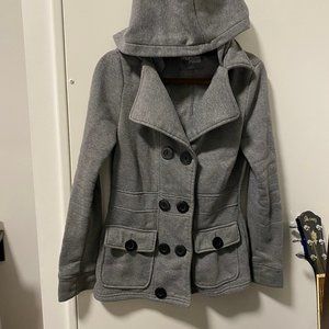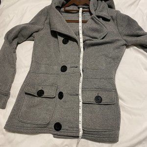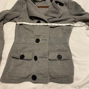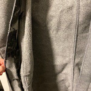 Worn, signs of wear: see pilling and loose strings. Lining on the inside coming off but is not visible from the outside