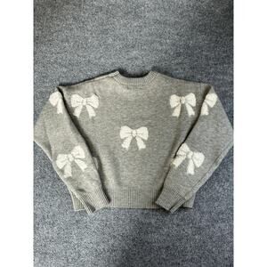Charlotte Russe Grey with white Bows Crop Sweater - Women's Size Small