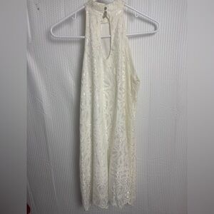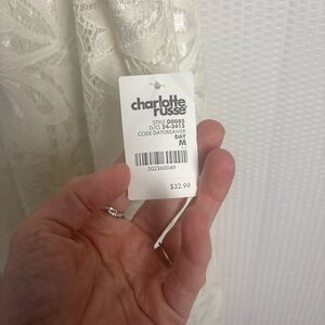 Chic backless design. Delicate lace pattern. Ideal for elegant events.