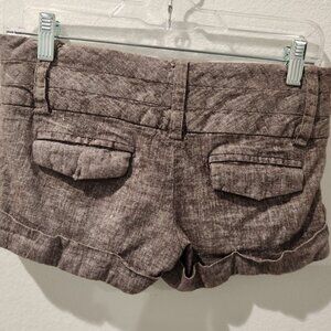 Charlotte Russe Linen Blend Shorts Size 3. Dark brown color mixed with white. Shorts have large belt loops, and are straight from the 00s. Low-rise fit with a slight stretch for comfort. Hook closures, no zippers. I am the original owner.