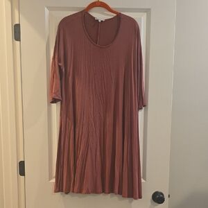 Flowy mauve dress. Round neckline. Half sleeves. Perfect for casual wear.