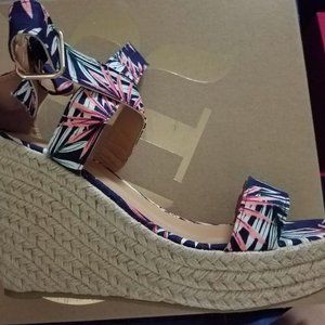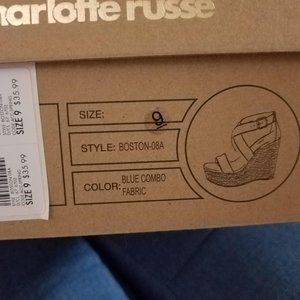 These are brand new, never work Charlotte Russe wedges. They are strappy multi colored with a floral pattern, perfect for spring and summer! They are size 9.