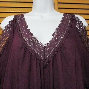 Charlotte Russe NEW top purple Whimsy Goth feminine lace open shoulder size XL