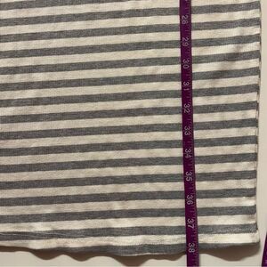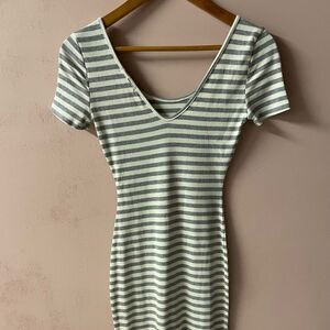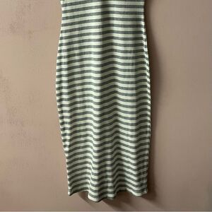 Classic ribbed fitted midi dress with a round neckline and v-back in a light gray and cream horizontal stripe. Perfect for warmer days with platform sneakers or with a cute casual heel. New with tags. Never been worn. Approximate measurements laying flat. Feel free to ask questions or make an offer!